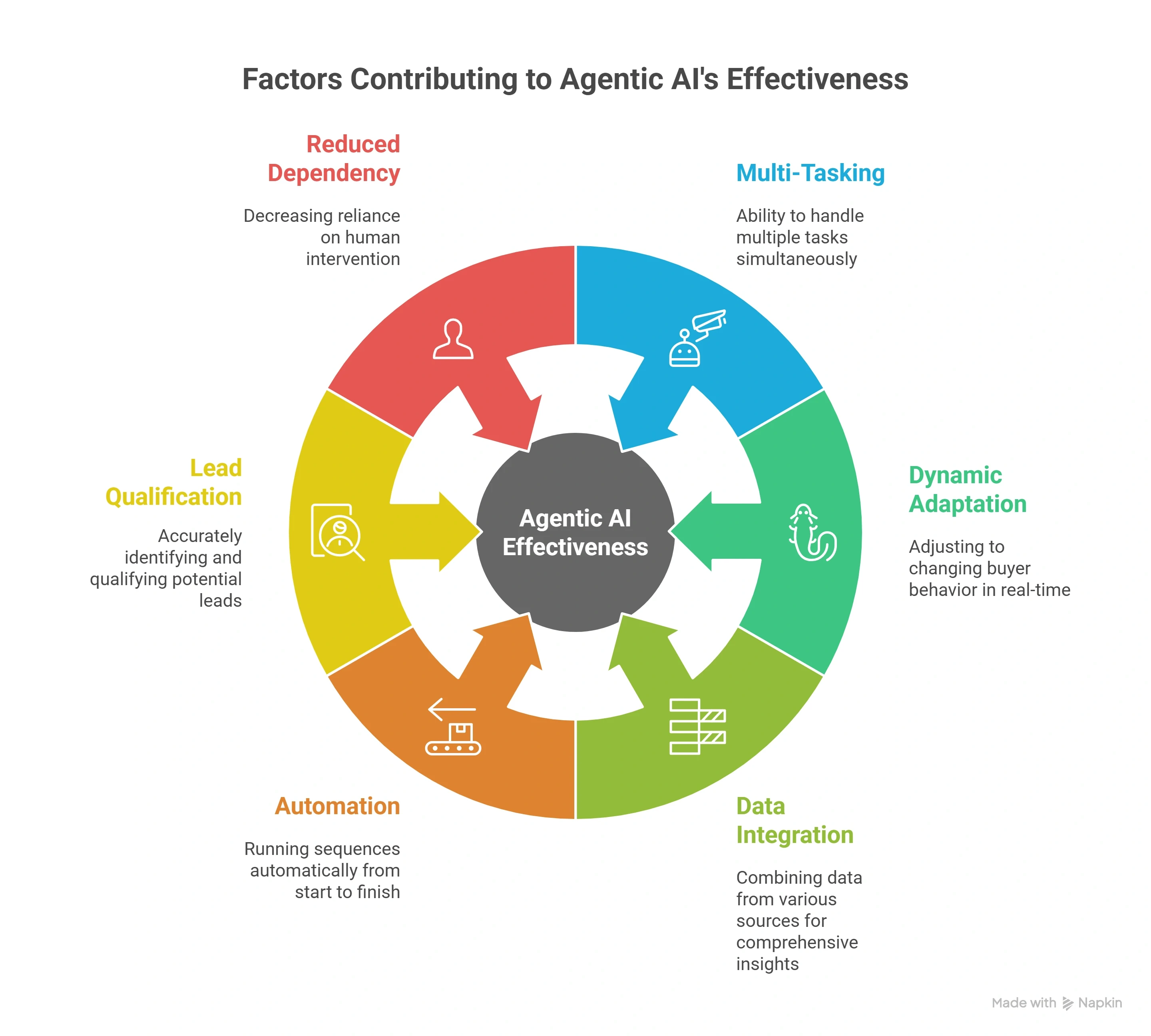 Agentic AI changes this completely. Instead of acting like a single AI tool, agentic AI uses multiple intelligent agents that work together finding leads, enriching data, writing messages, replying automatically, qualifying prospects, and booking meetings.
