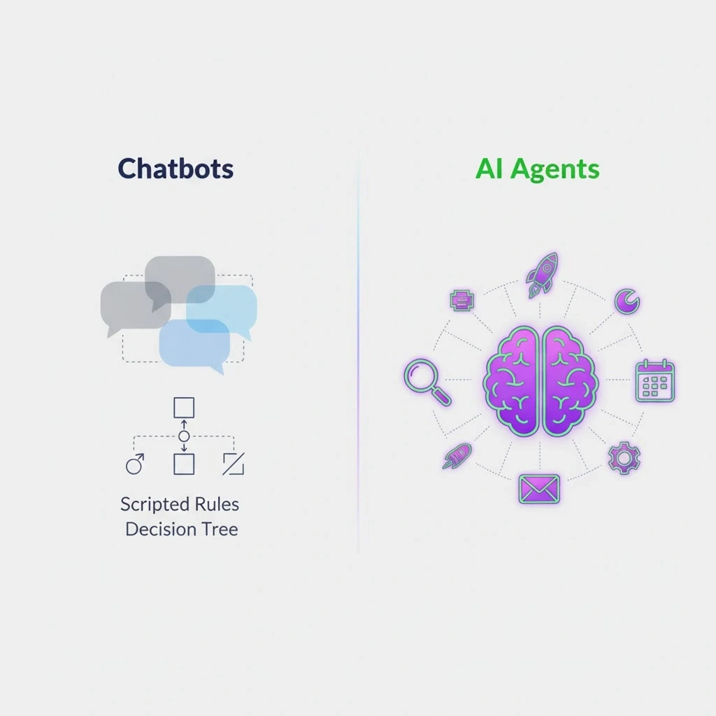 To users, typing a question into a chatbot or an AI agent feels the same. The difference lies in what happens next: