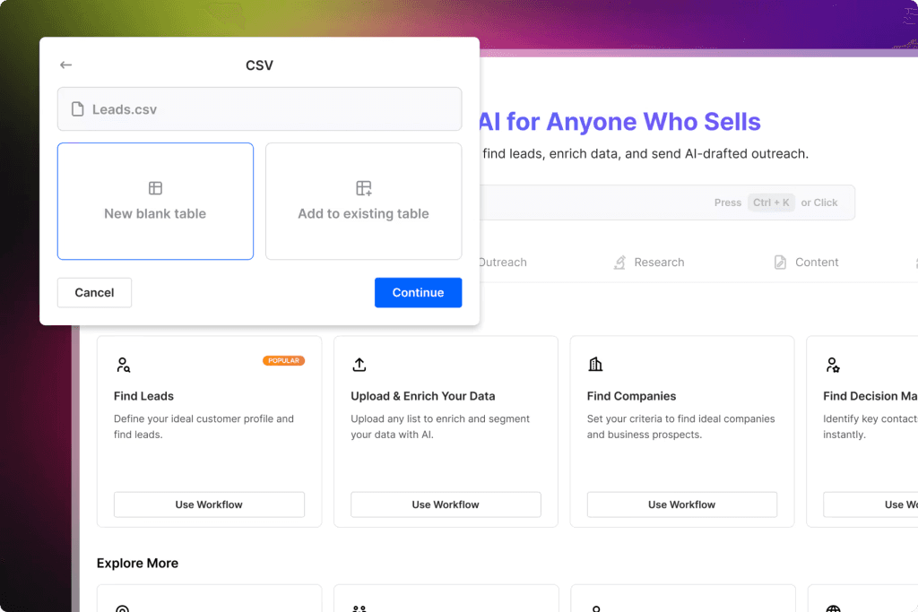 Lead enrichment is the process of adding missing details so you have a full picture of every lead. AI pulls live data from web sources, CRMs, social profiles, and company databases to enrich prospects.