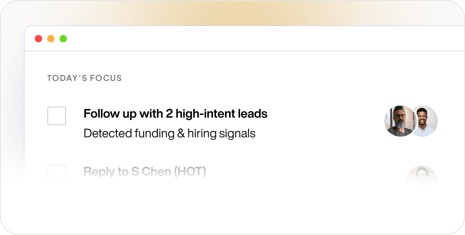 AI handles lead gen, enrichment, scoring, and inbox. Your team focuses on closing.