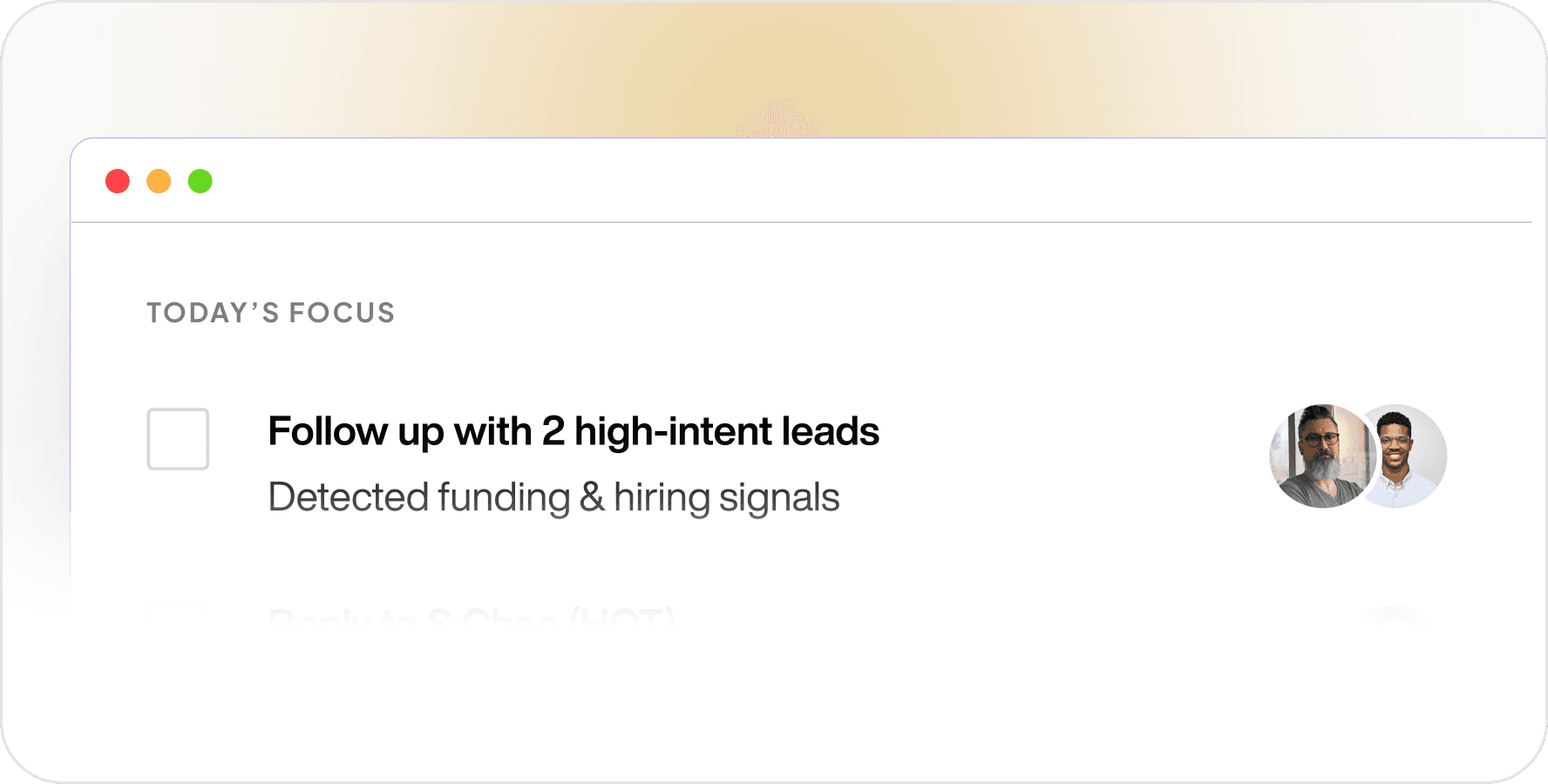 AI finds leads, enriches them, scores by fit, and manages your inbox. You just close.